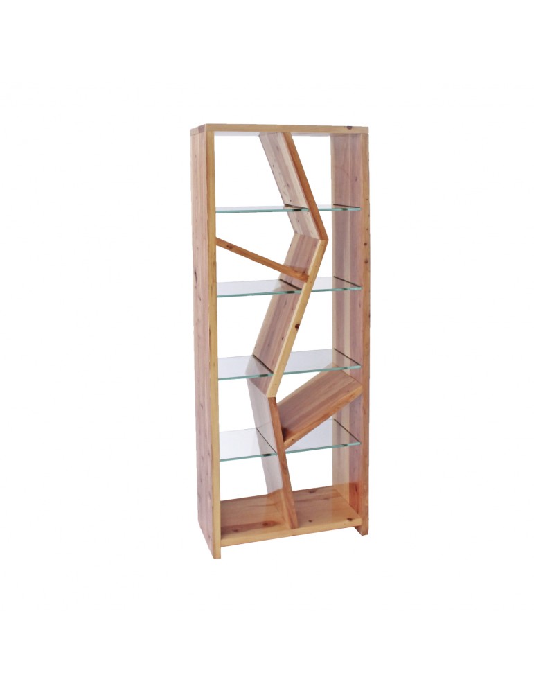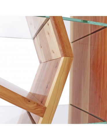 Server es una estantería con una morfología que se asemeja a un árbol enmarcado, atravesado por cristal.