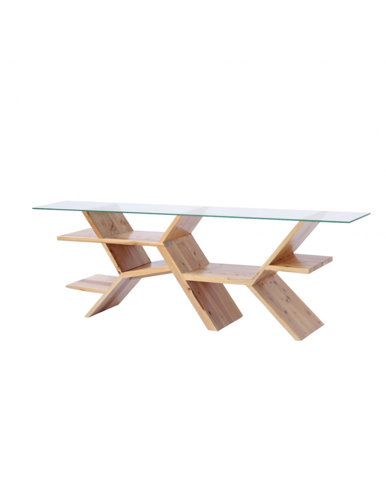 Veiga é um aparador de arrumação e a sua forma é inspirada na encruzilhada de ramos de árvores, de forma livre e natural. Neste caso, são as intersecções que fornecem as áreas de arrumação.